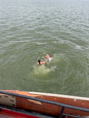 Und dann kam das mutigste Erlebnis des Tages: Schwimmen im IJsselmeer. Bei frischer Wassertemperatur sprangen viele mutig von Bord ins Wasser und hatten dabei jede Menge Spaß. Es wurde geplanscht, gelacht und gejubelt.